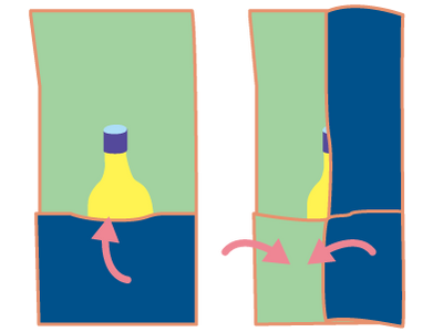 瓶の底面に被せ、さらに横から瓶を包みます。