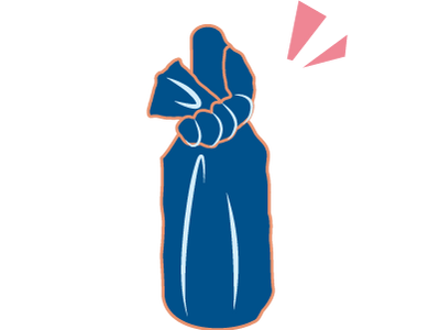 Fold the near side of the tenugui to cover the bottom part of the bottle. Fold the left and right edges of the bottom fabric.